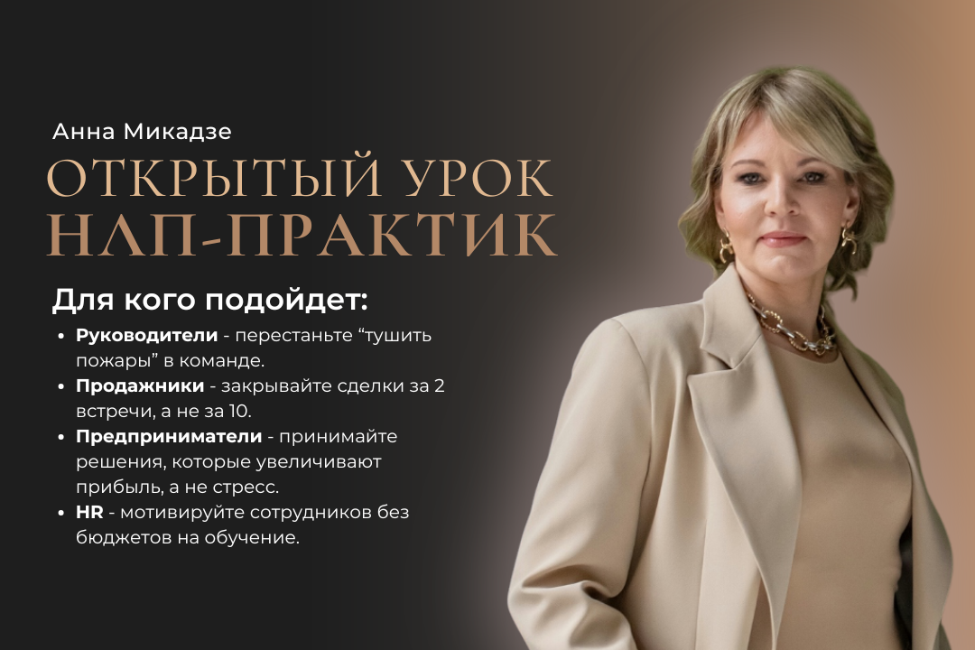 Лимит: 25 мест | Ведущая: Анна Микадзе, сертифицированный мастер-тренер НЛП (APC)